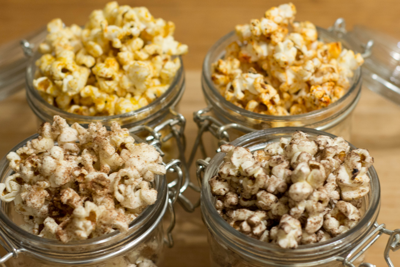 - Step 5: Lightly drizzle popcorn with 1 Tbsp. olive oil and toss well. Sprinkle desired amount of flavouring mixture over popcorn, toss and serve.